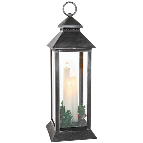 JD Xmas Flame Tall Lantern 3 Candle Black