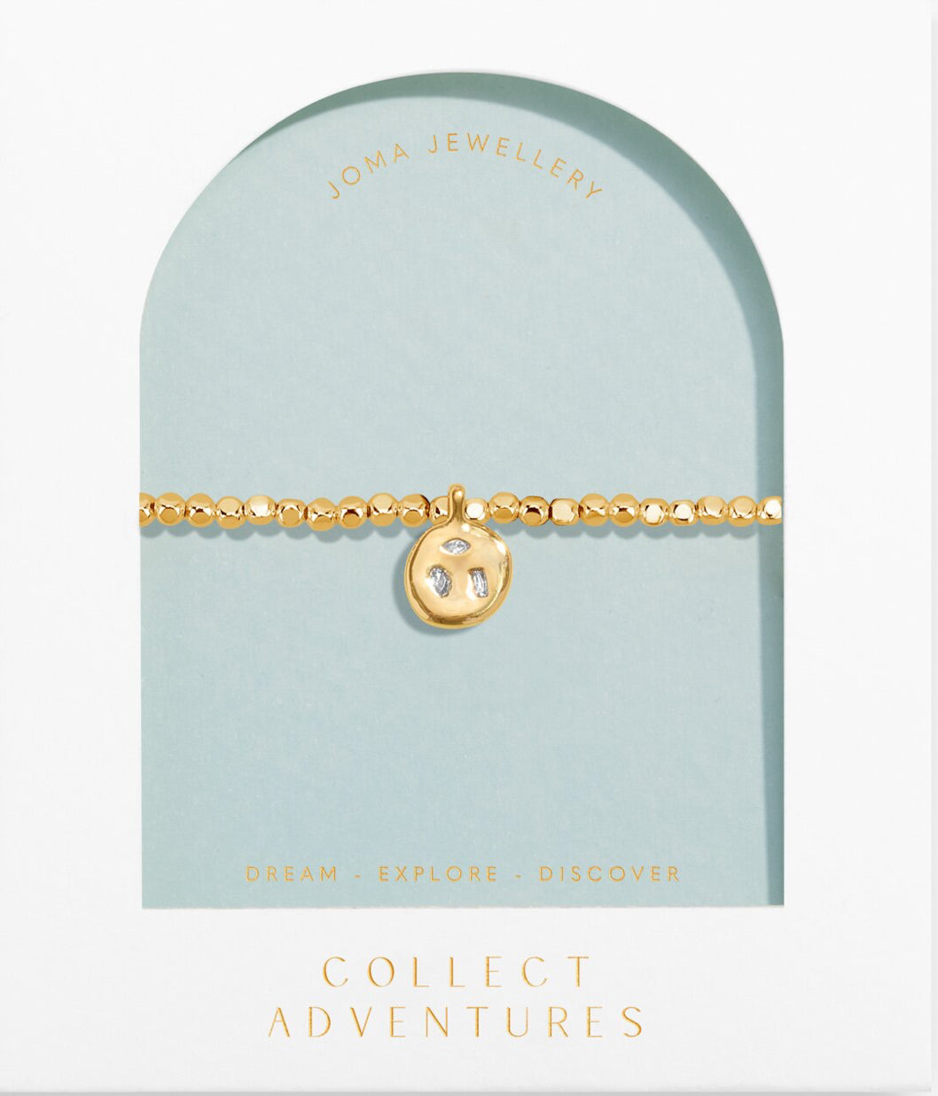 Sun-soaked and sentimental, our Dolce Vita collection is your and your loved ones’ one-way ticket to the Amalfi Coast this season! With its artisan-feel hammered beads and shining cubic zirconia crowned charm, the Dolce Vita 'Collect Adventures' bracelet in gold plating will arrive ready to delight in a peekaboo arch textured box with a watercolour wash finish in a range of sunset shades.