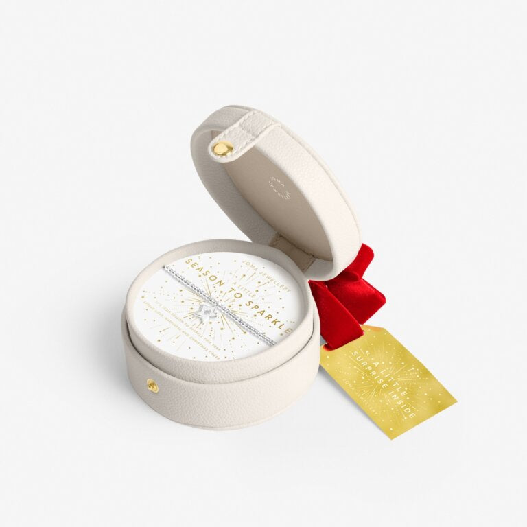 An extra special way for customers to gift an A Little to their loved one this festive season, say hello to our 'Season To Sparkle' Bauble Jewellery Box In Silver Plating! Designed with a soft vegan leather material and featuring a popper fastening, a red velvet bow, and a golden sentiment on the front, this lovely buttercream jewellery box houses our charming A Little 'Season To Sparkle' Bracelet in silver plating - complete with a beautiful beaded design and a sentiment-stamped presentation card. It's the perfect addition to your festive in-store display!