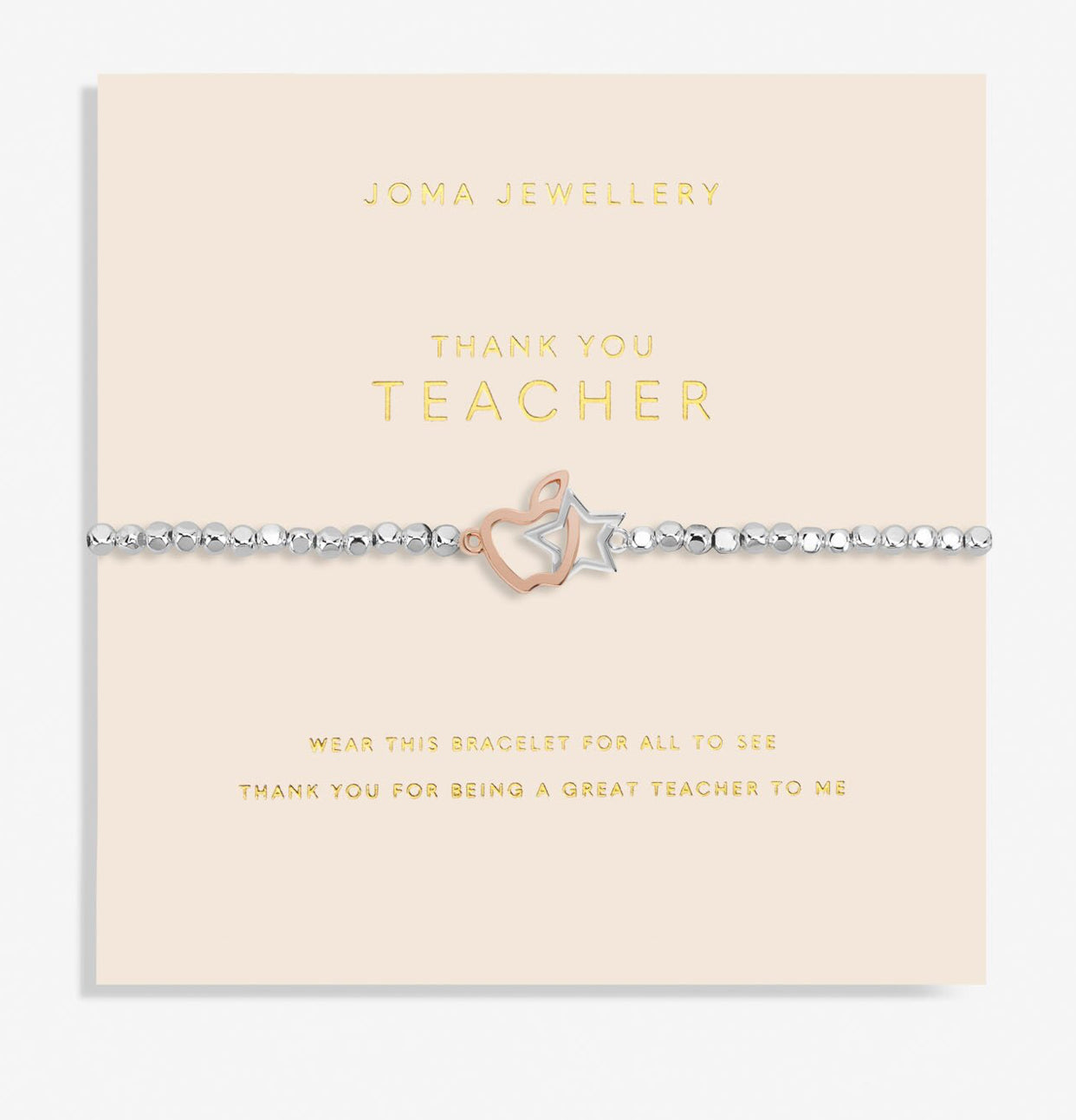 Discover our Forever Yours 'Thank You Teacher' Bracelet In Silver Plating And Rose Gold Plating. This adorable piece, which features a rose gold-plated and silver-plated charm and a hammered bead design, is the perfect token of love and thanks for the end of the school term. Complete with a pretty blush pink card which has been finished with a special sentiment and a sweet poem, it's guaranteed to brighten their day.