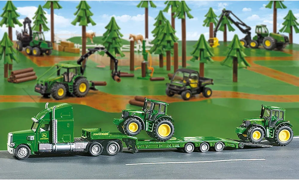 SIKU 1:87 JOHN DEERE LOW LOADER with 2 JOHN DEERE TRACTORS