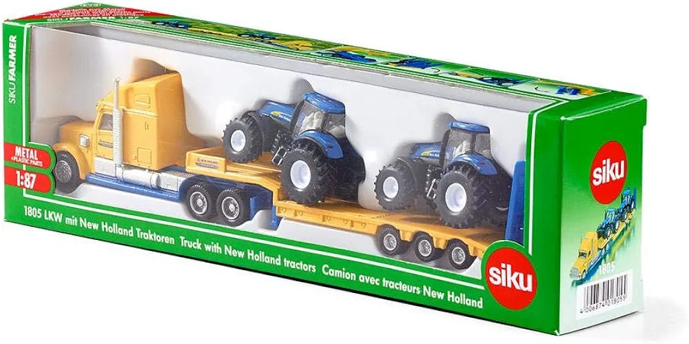 - Contents: 1x siku 1805 lorry with New Holland tractors, Scale: 1:87, Material: metal/plastic, Dimensions: 22.2 x 3.3 x 5.1 cm, Weight: 0.194 kg, Colour: Yellow/Blue, Series: SIKU Farmer