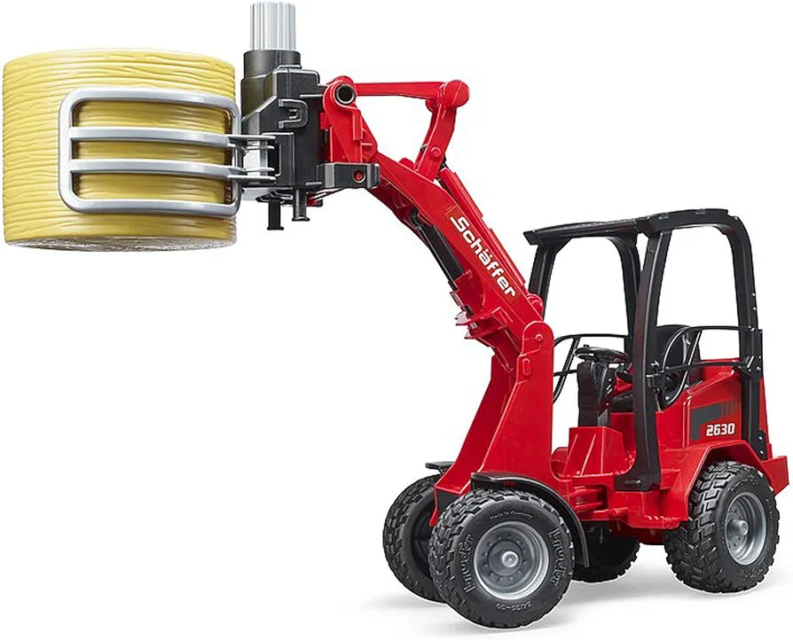 BRUDER SCHAFFER COMPACT LOADER 2630 W/BALE GRIPPER & 1 ROUND BALE