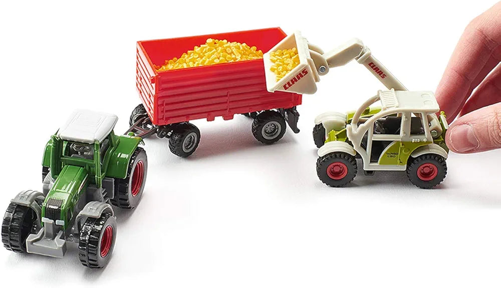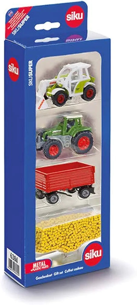 - Contents: 1x siku 6304 agriculture gift set, Includes 1 tractor, 1 telescopic loader, 1 trailer, 1 pack of granules, Material: metal/plastic, Dimensions: 29.6 x 11 x 4.8 cm, Colour: multicolour, Series: SIKU Gift Sets