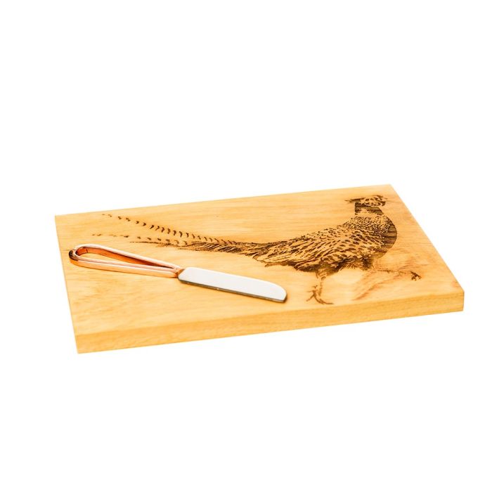 Selbrae House Oak Cheese Board & Knife Set - Pheasant