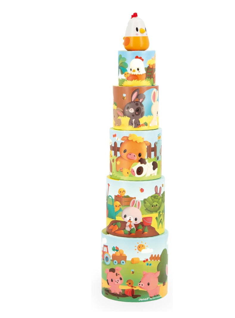 - EARLY-LEARNING PYRAMID: Thanks to the 5 stackable round cubes, each of which is a different size yet suitable for small hands and easy to grasp, children aged 1 and up can reconstruct a 5-storey pyramid or slot the 5 cubes into one another.
