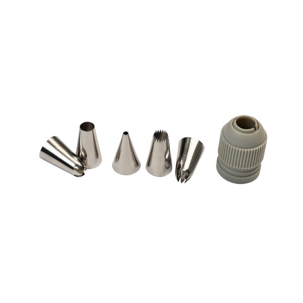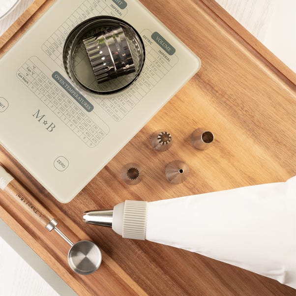 Add an extra touch of flair to your baked creations with the Mary Berry At Home Piping Bag Set With Nozzles. This high-quality, coated cotton bag is accompanied by 5 stainless steel nozzles, perfect for adding unique patterns and designs to your cakes and desserts. Whether you're a beginner or a seasoned baker, this piping bag set is an essential tool to bring your creative vision to life.