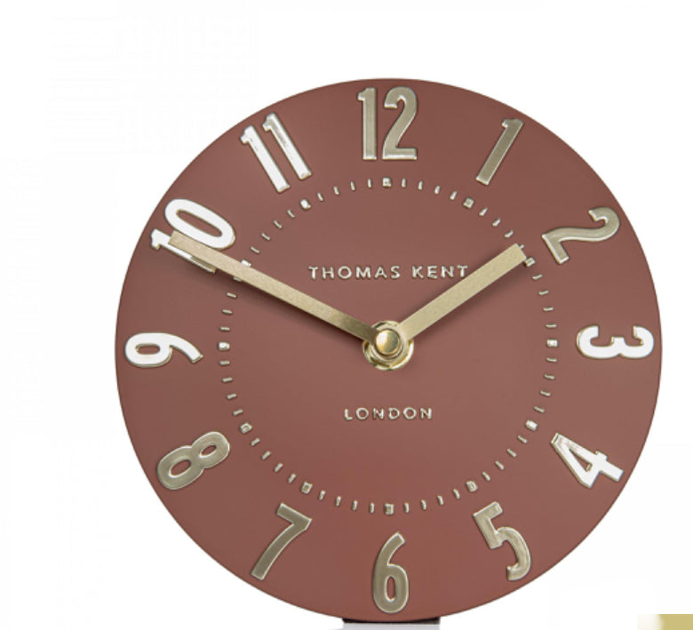 A rich shade of Auburn flaunts itself across our Mulberry collection. The impressive tone holds a warm personality. New for 2024, the simple, open-faced, curvaceous styling invites foiled metallic numerals, ticks, and hands to add a glamourous spirit to the distinct 6" mantel face. The overall clock design complements a modern home searching for a splash of on-trend colour.